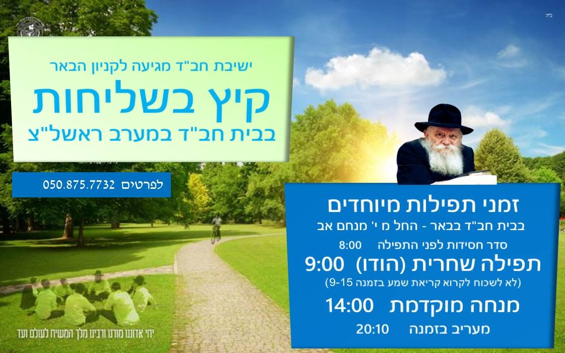עם קבוצת בחורים מישיבת חבד שיגורו כאן איתנו, במערב, יתפללו, ילמדו, יקרבו ויפעלו עם תושבי המערב במשך כל היום כולו. - מוזמנים להשתתף בתפילות בשיעורים ובשאר הפעילויות