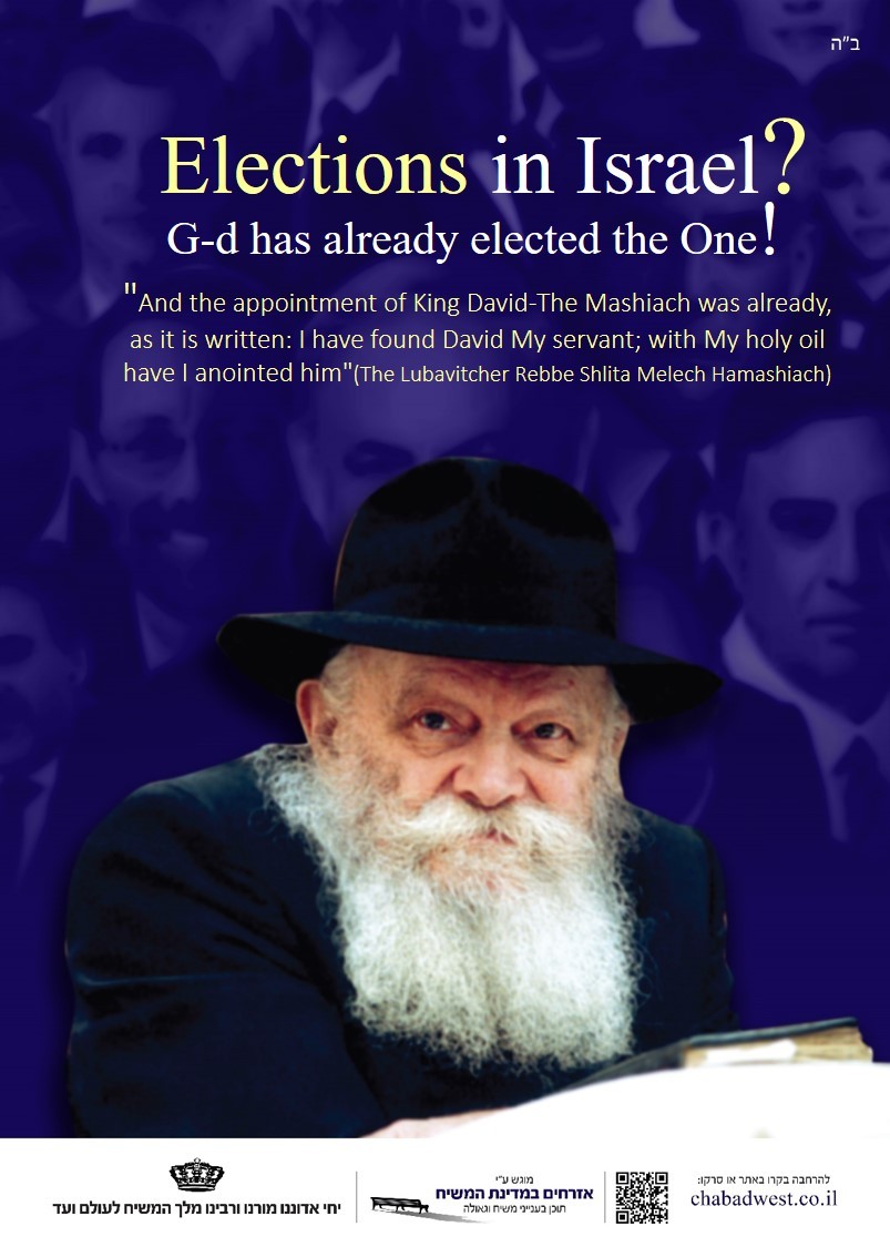 ברוח הזמן ובתקופה זו בה עסוקים רבים ב'מי יבחר', הפקנו פוסטר מרשים בעברית באנגלית וברוסית על מנת לעורר את כולנו על בחירתו זה מכבר של הקב"ה ברבי שליט"א מלך המשיח.